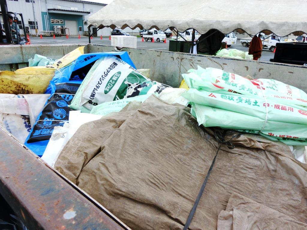 農業用の廃プラスチックは泥や土がついていたり、農薬のボトルなども一般ごみとして出せないため、年に数回回収作業を行います。