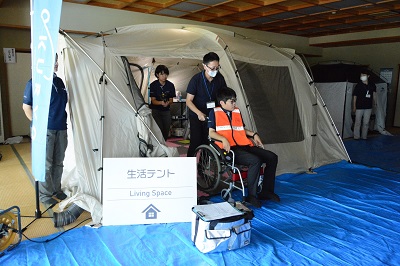 同社は、東日本大震災時や全国各地の被災地に赴いて避難所での衛生環境を支えてきた経験から、電気・ガス・水道を備えた移動式のコンテナハウスを開発するなど、災害弱者でも安心して避難できるよう尽力しています。笠井健代表取締役社長は「在宅患者や小児患者は避難を遠慮したり、避難所のニーズが多様化して担当者の対応が難しかったりする。また、災害も多様化していて、被災の経験がない地域も被災する可能性がある。我々がこれまで培ってきた資機材、ノウハウ、ソフト面を生かして、市民の皆さんと実践しながら、災害に強い地域となるよう継続して取り組みたい」と意気込みを述べました。