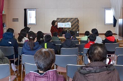 同地区の小学生や保護者ら約30人が参加。昔話の読み聞かせのほか、童謡「うれしいひなまつり」など計3曲のハンドベル演奏体験などが実施され、参加者はひな祭りを楽しんでいました。