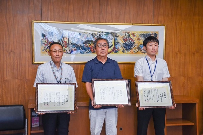 北上地区防犯協会連合会と北上警察署長連名の表彰式は6月30日、市役所本庁舎で行われ、北上市と西和賀町で継続的に防犯活動に取り組む個人と団体を表彰しました。