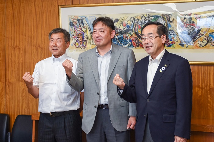 10月6日から鹿児島県で開催される第12回全国和牛能力共進会へ出場する西部開発農産は8月29日、髙橋市長を表敬訪問しました。